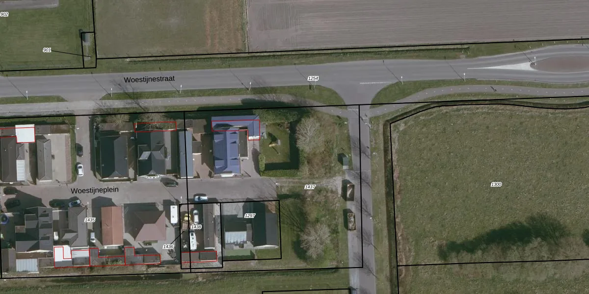 Het perceel waarop Woestijneplein 20 staat heeft een oppervlakte van 2622 m². Dit is een zeer groot perceel. De perceeloppervlakte wordt geregistreerd door het Kadaster. Gedetailleerde informatie over de maten van dit perceel kunt u vinden in het rapport Kadastrale kaart met maatvoering van Woestijneplein 20.
