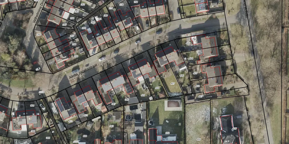 Het perceel waarop Aletta Jacobsstraat 5 staat heeft een oppervlakte van 359 m². Dit is een groot perceel. De perceeloppervlakte wordt geregistreerd door het Kadaster. Gedetailleerde informatie over de maten van dit perceel kunt u vinden in het rapport Kadastrale kaart met maatvoering van Aletta Jacobsstraat 5.