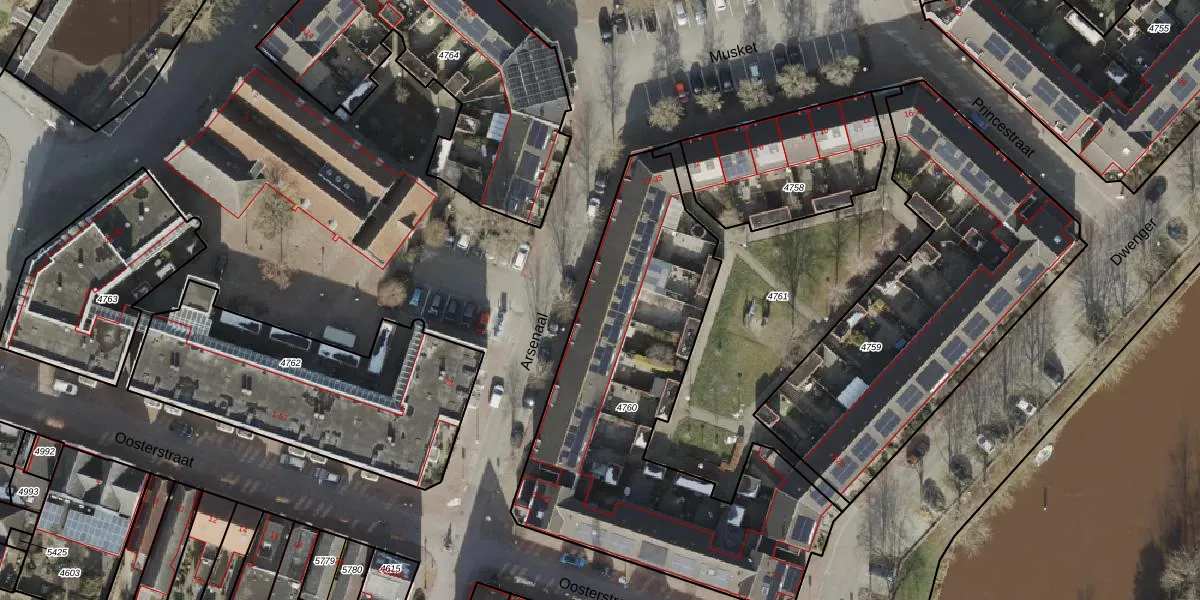 Het perceel waarop Arsenaal 21 staat heeft een oppervlakte van 1815 m². Dit is een zeer groot perceel. De perceeloppervlakte wordt geregistreerd door het Kadaster. Gedetailleerde informatie over de maten van dit perceel kunt u vinden in het rapport Kadastrale kaart met maatvoering van Arsenaal 21.