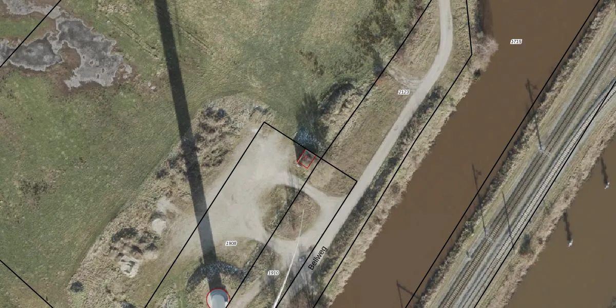 Het perceel waarop Bellweg 1-T staat heeft een oppervlakte van 1716 m². Dit is een zeer groot perceel. De perceeloppervlakte wordt geregistreerd door het Kadaster. Gedetailleerde informatie over de maten van dit perceel kunt u vinden in het rapport Kadastrale kaart met maatvoering van Bellweg 1-T.
