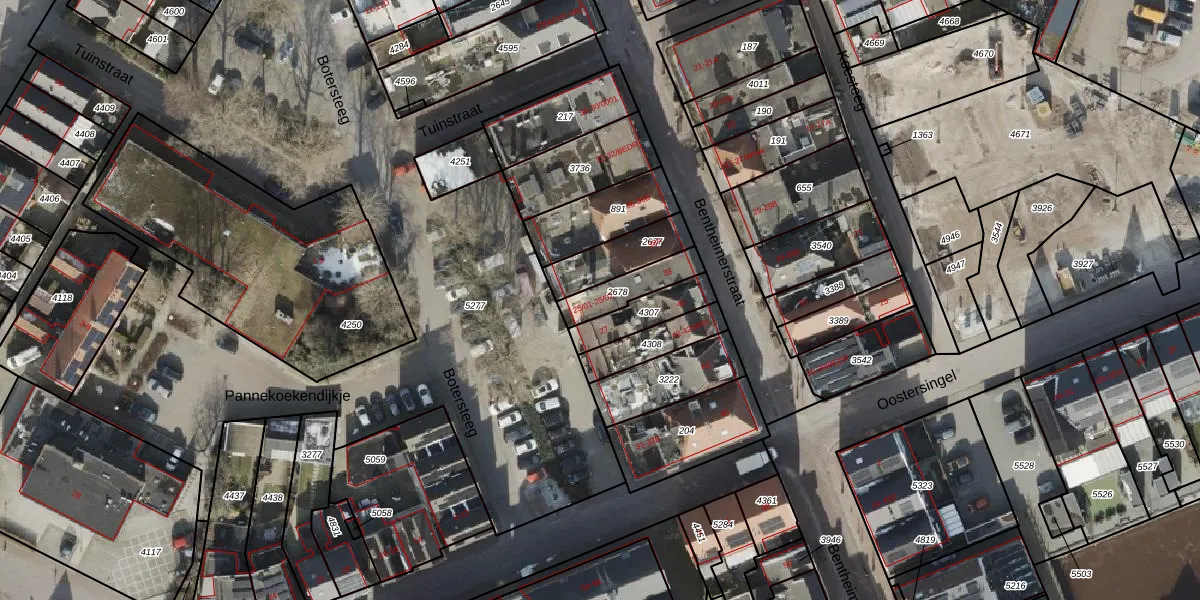 Het perceel waarop Botersteeg 25-02 staat heeft een oppervlakte van 115 m². Dit is een middelgroot perceel. De perceeloppervlakte wordt geregistreerd door het Kadaster. Gedetailleerde informatie over de maten van dit perceel kunt u vinden in het rapport Kadastrale kaart met maatvoering van Botersteeg 25-02.