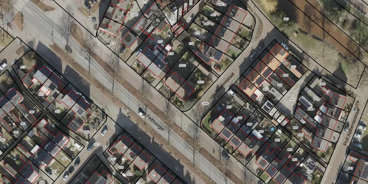 Het perceel waarop Burg Feithsingel 13 staat heeft een oppervlakte van 330 m². Dit is een groot perceel. De perceeloppervlakte wordt geregistreerd door het Kadaster. Gedetailleerde informatie over de maten van dit perceel kunt u vinden in het rapport Kadastrale kaart met maatvoering van Burg Feithsingel 13.