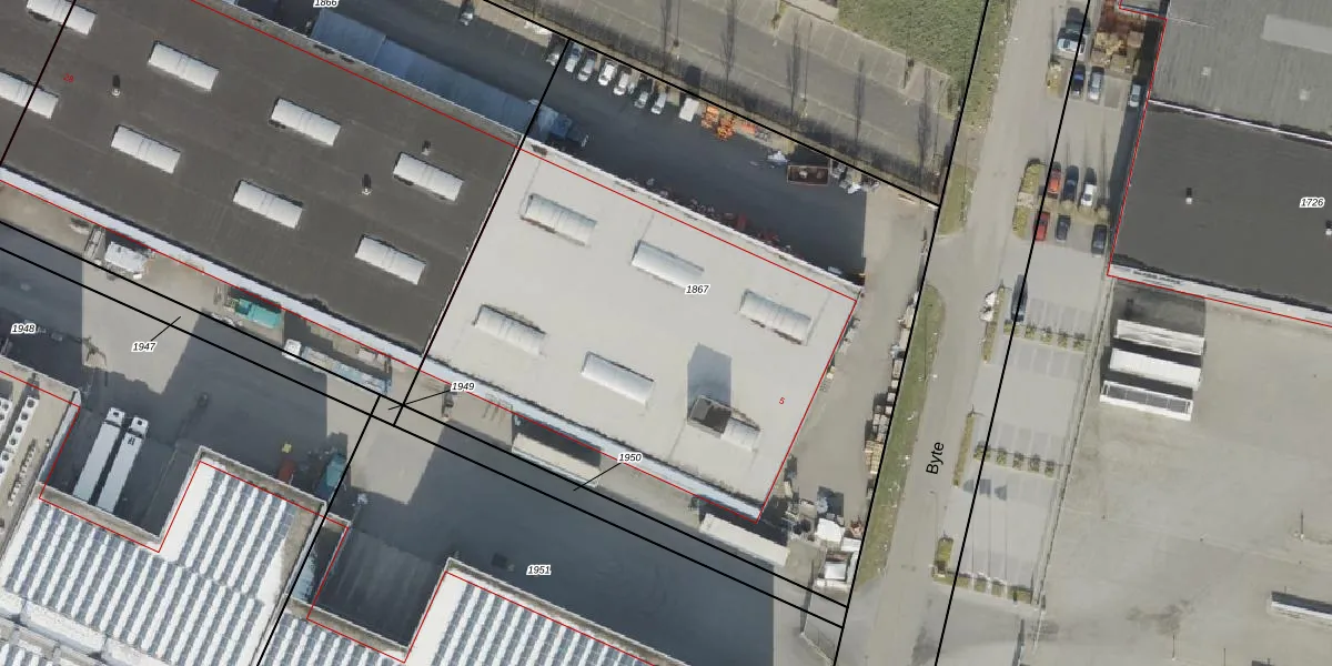 Het perceel waarop Byte 5 staat heeft een oppervlakte van 4069 m². Dit is een zeer groot perceel. De perceeloppervlakte wordt geregistreerd door het Kadaster. Gedetailleerde informatie over de maten van dit perceel kunt u vinden in het rapport Kadastrale kaart met maatvoering van Byte 5.