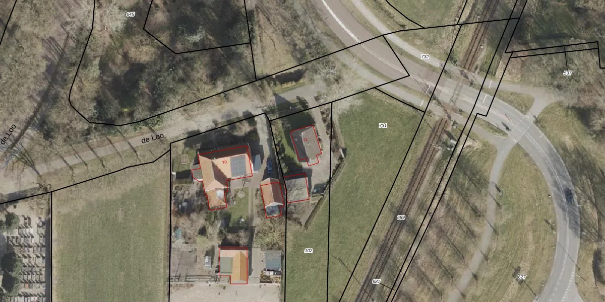 de Loo 72 is gelegen op kadastraal perceel CVD00M102. Deze kadastrale aanduiding is uniek en wordt gebruikt door het Kadaster om eigendomsrechten en andere zakelijke rechten vast te leggen. Het perceel maakt onderdeel uit van de kadastrale gemeente Coevorden.