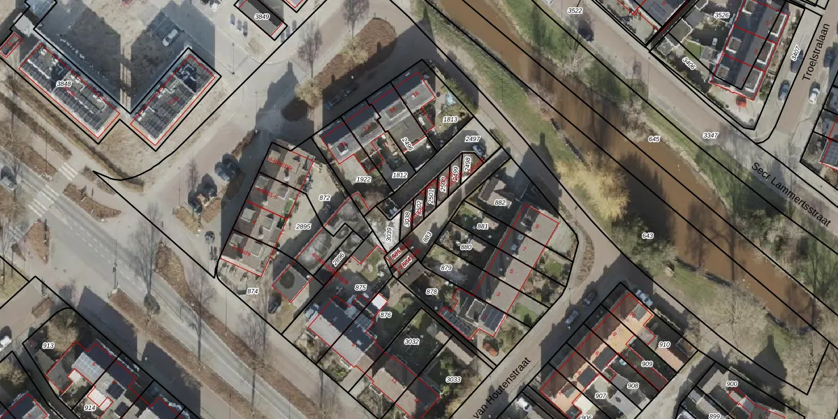 Gebruik de zoekbalk of klik op een perceel voor informatie over de adressen binnen dit perceel.