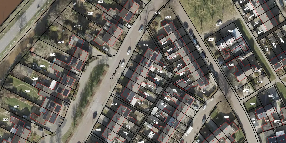 Gebruik de zoekbalk of klik op een perceel voor informatie over de adressen binnen dit perceel.