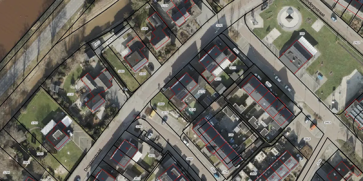 Het perceel waarop Drostenstraat 50 staat heeft een oppervlakte van 275 m². Dit is een middelgroot perceel. De perceeloppervlakte wordt geregistreerd door het Kadaster. Gedetailleerde informatie over de maten van dit perceel kunt u vinden in het rapport Kadastrale kaart met maatvoering van Drostenstraat 50.
