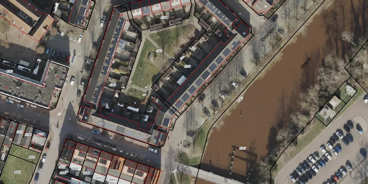 Het perceel waarop Dwenger 13 staat heeft een oppervlakte van 1553 m². Dit is een zeer groot perceel. De perceeloppervlakte wordt geregistreerd door het Kadaster. Gedetailleerde informatie over de maten van dit perceel kunt u vinden in het rapport Kadastrale kaart met maatvoering van Dwenger 13.