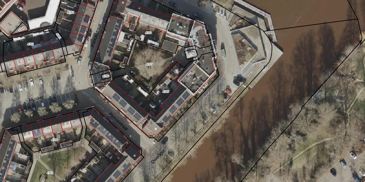 Het perceel waarop Dwenger 33 staat heeft een oppervlakte van 1467 m². Dit is een zeer groot perceel. De perceeloppervlakte wordt geregistreerd door het Kadaster. Gedetailleerde informatie over de maten van dit perceel kunt u vinden in het rapport Kadastrale kaart met maatvoering van Dwenger 33.