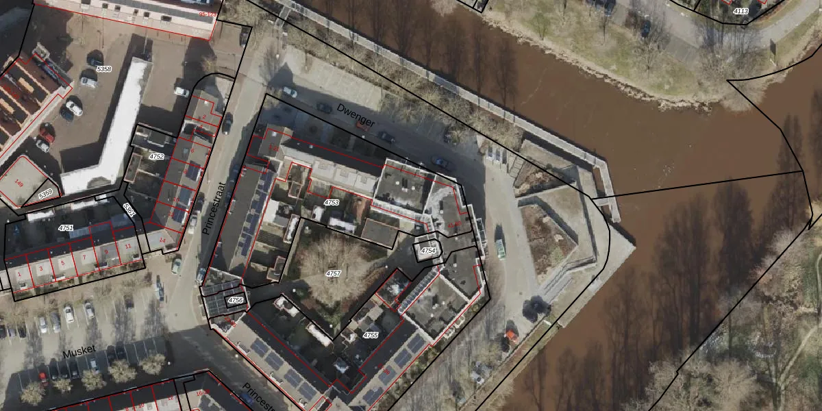 Het perceel waarop Dwenger 57 staat heeft een oppervlakte van 1551 m². Dit is een zeer groot perceel. De perceeloppervlakte wordt geregistreerd door het Kadaster. Gedetailleerde informatie over de maten van dit perceel kunt u vinden in het rapport Kadastrale kaart met maatvoering van Dwenger 57.