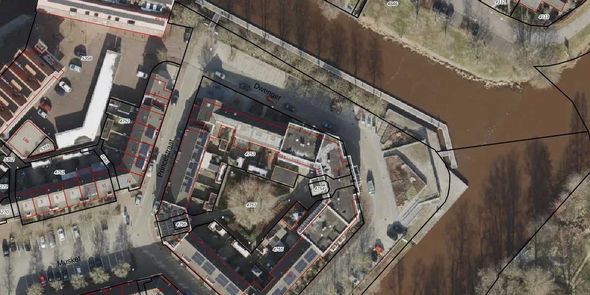 Het perceel waarop Dwenger 65 staat heeft een oppervlakte van 1551 m². Dit is een zeer groot perceel. De perceeloppervlakte wordt geregistreerd door het Kadaster. Gedetailleerde informatie over de maten van dit perceel kunt u vinden in het rapport Kadastrale kaart met maatvoering van Dwenger 65.