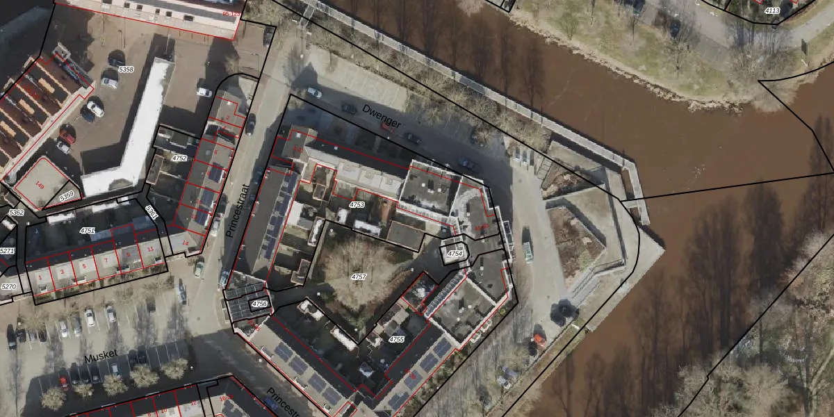 Het perceel waarop Dwenger 67 staat heeft een oppervlakte van 1551 m². Dit is een zeer groot perceel. De perceeloppervlakte wordt geregistreerd door het Kadaster. Gedetailleerde informatie over de maten van dit perceel kunt u vinden in het rapport Kadastrale kaart met maatvoering van Dwenger 67.