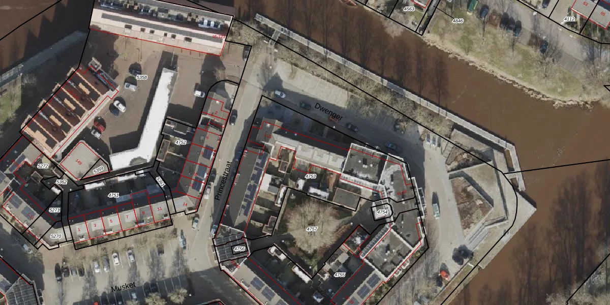 Het perceel waarop Dwenger 87 staat heeft een oppervlakte van 1551 m². Dit is een zeer groot perceel. De perceeloppervlakte wordt geregistreerd door het Kadaster. Gedetailleerde informatie over de maten van dit perceel kunt u vinden in het rapport Kadastrale kaart met maatvoering van Dwenger 87.