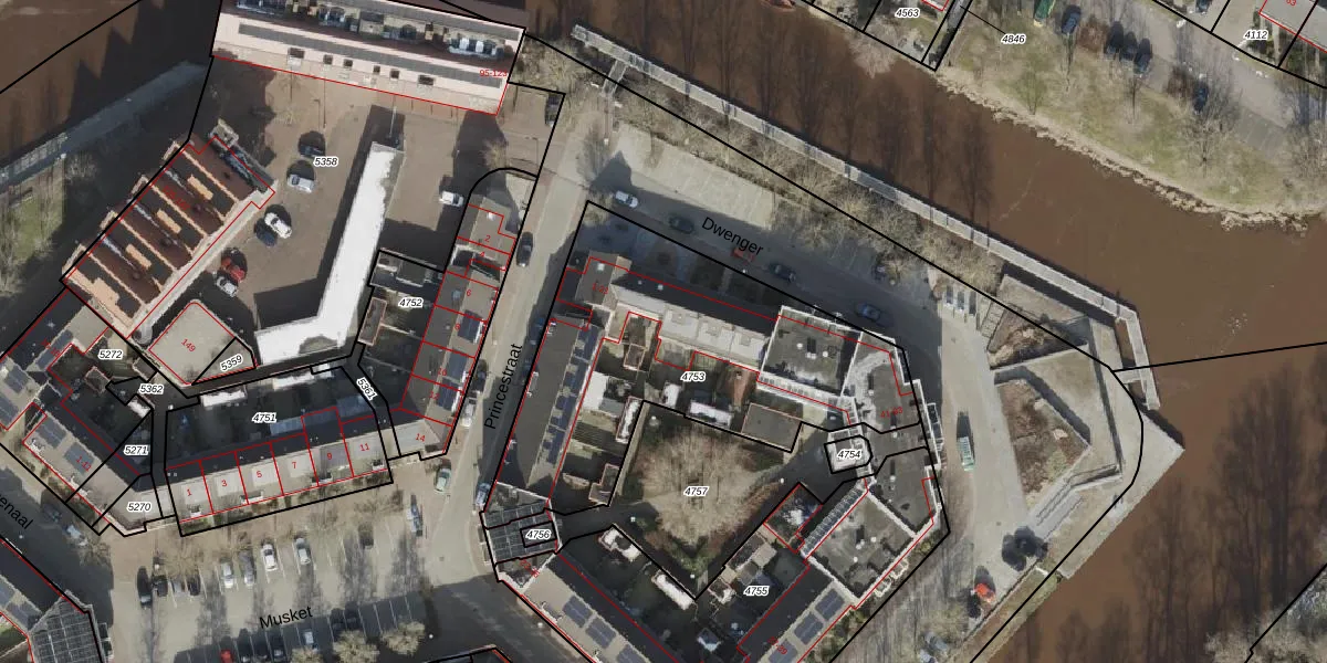 Het perceel waarop Dwenger 89 staat heeft een oppervlakte van 1551 m². Dit is een zeer groot perceel. De perceeloppervlakte wordt geregistreerd door het Kadaster. Gedetailleerde informatie over de maten van dit perceel kunt u vinden in het rapport Kadastrale kaart met maatvoering van Dwenger 89.