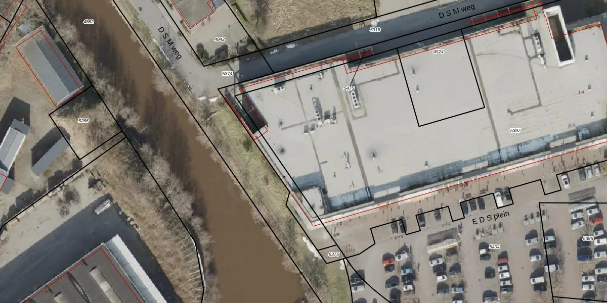 Het perceel waarop E D S plein 4 staat heeft een oppervlakte van 5885 m². Dit is een zeer groot perceel. De perceeloppervlakte wordt geregistreerd door het Kadaster. Gedetailleerde informatie over de maten van dit perceel kunt u vinden in het rapport Kadastrale kaart met maatvoering van E D S plein 4.