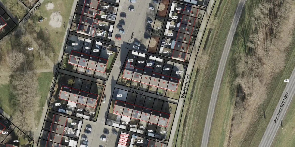 Gebruik de zoekbalk of klik op een perceel voor informatie over de adressen binnen dit perceel.