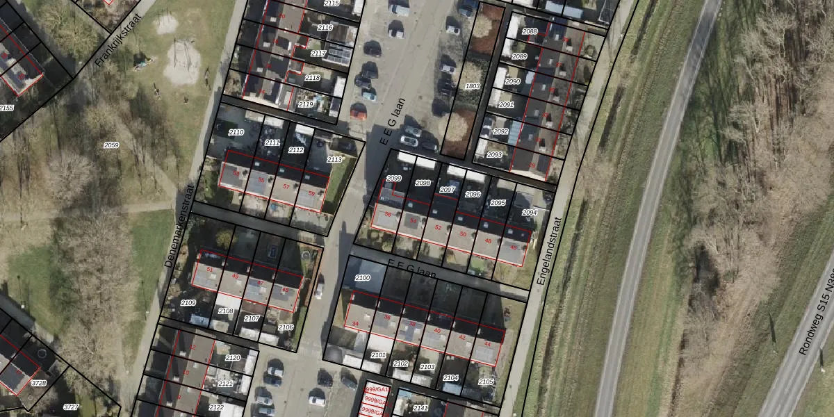 E E G laan 54 is gelegen op kadastraal perceel CVD00G2098. Deze kadastrale aanduiding is uniek en wordt gebruikt door het Kadaster om eigendomsrechten en andere zakelijke rechten vast te leggen. Het perceel maakt onderdeel uit van de kadastrale gemeente Coevorden.