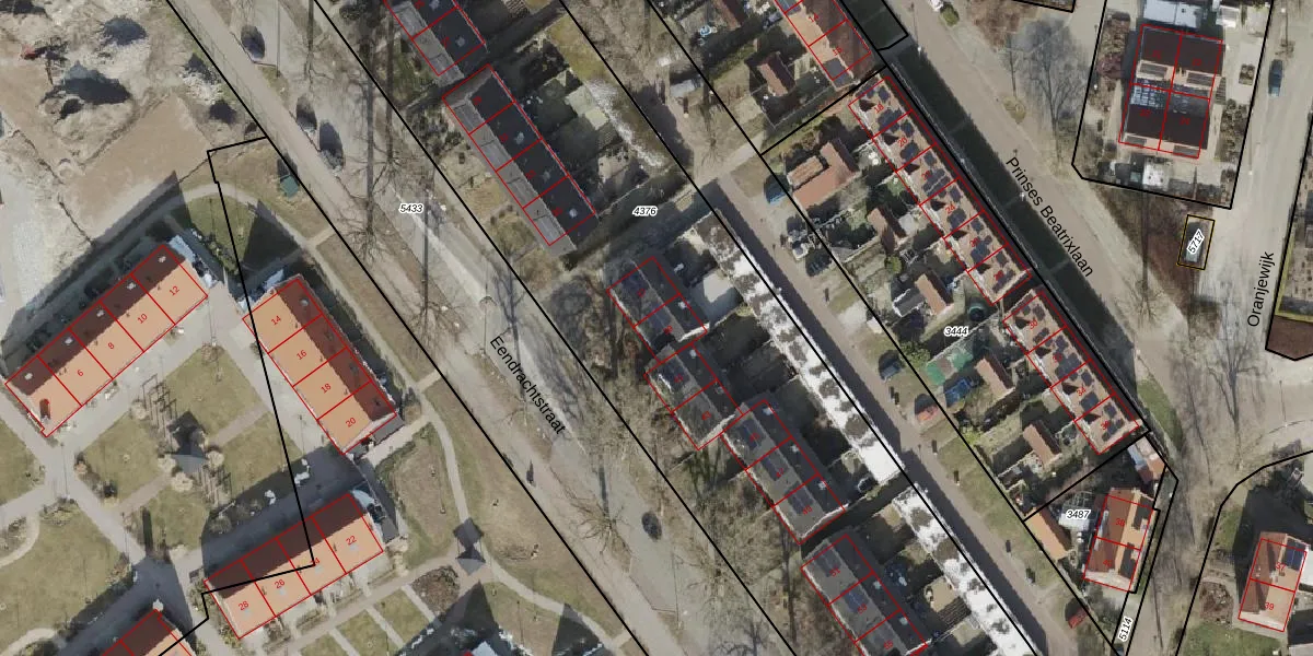 Het perceel waarop Eendrachtstraat 39 staat heeft een oppervlakte van 5890 m². Dit is een zeer groot perceel. De perceeloppervlakte wordt geregistreerd door het Kadaster. Gedetailleerde informatie over de maten van dit perceel kunt u vinden in het rapport Kadastrale kaart met maatvoering van Eendrachtstraat 39.