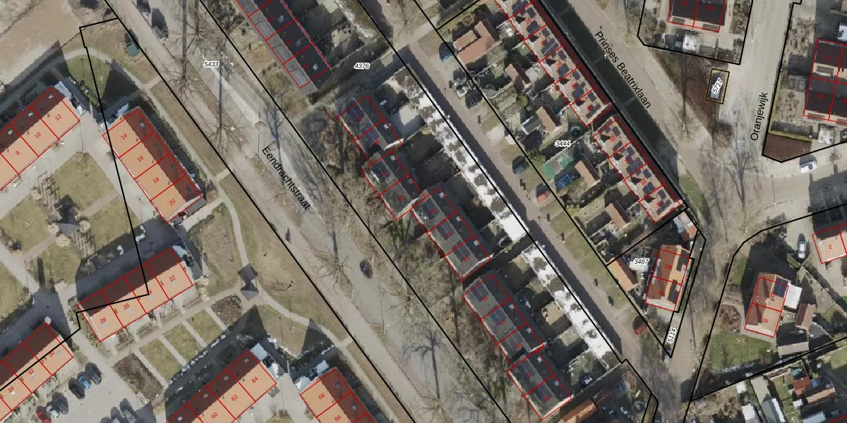 Eendrachtstraat 45 is gelegen op kadastraal perceel CVD00D4376. Deze kadastrale aanduiding is uniek en wordt gebruikt door het Kadaster om eigendomsrechten en andere zakelijke rechten vast te leggen. Het perceel maakt onderdeel uit van de kadastrale gemeente Coevorden.