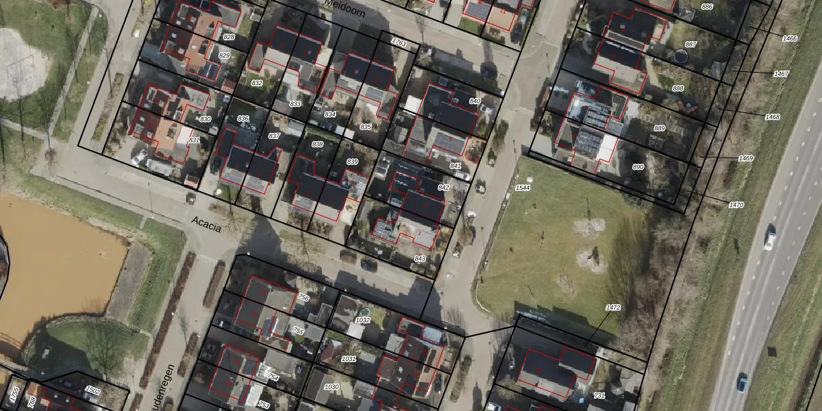 Gebruik de zoekbalk of klik op een perceel voor informatie over de adressen binnen dit perceel.