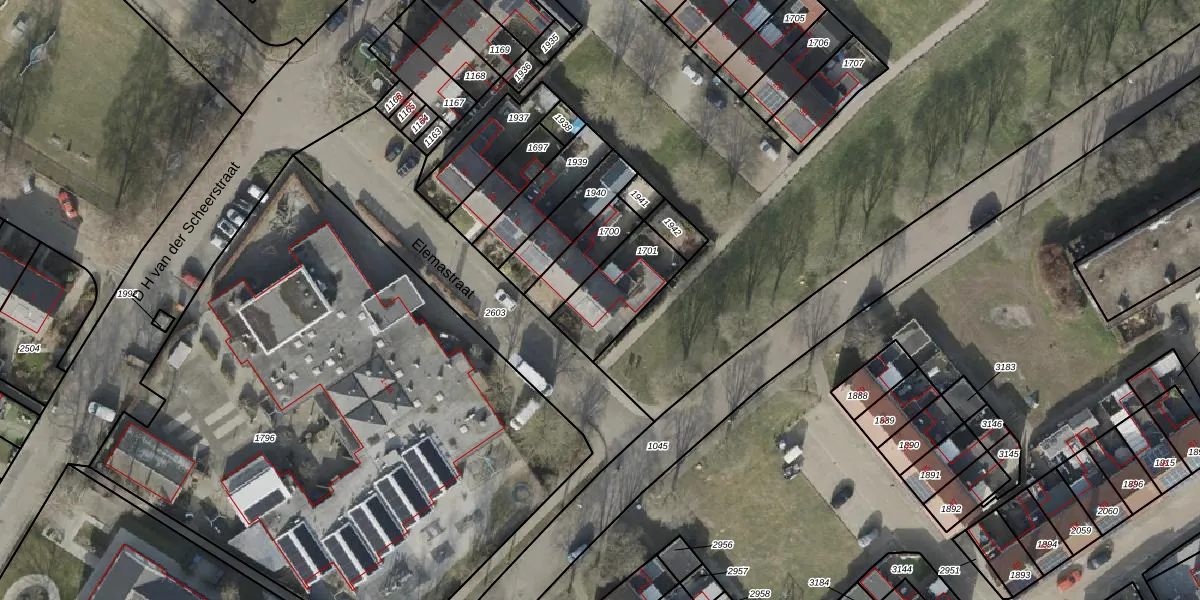 Het perceel waarop Elemastraat 2 staat heeft een oppervlakte van 233 m². Dit is een middelgroot perceel. De perceeloppervlakte wordt geregistreerd door het Kadaster. Gedetailleerde informatie over de maten van dit perceel kunt u vinden in het rapport Kadastrale kaart met maatvoering van Elemastraat 2.
