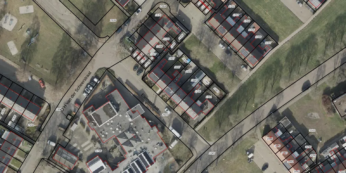 Het perceel waarop Elemastraat 8 staat heeft een oppervlakte van 166 m². Dit is een middelgroot perceel. De perceeloppervlakte wordt geregistreerd door het Kadaster. Gedetailleerde informatie over de maten van dit perceel kunt u vinden in het rapport Kadastrale kaart met maatvoering van Elemastraat 8.