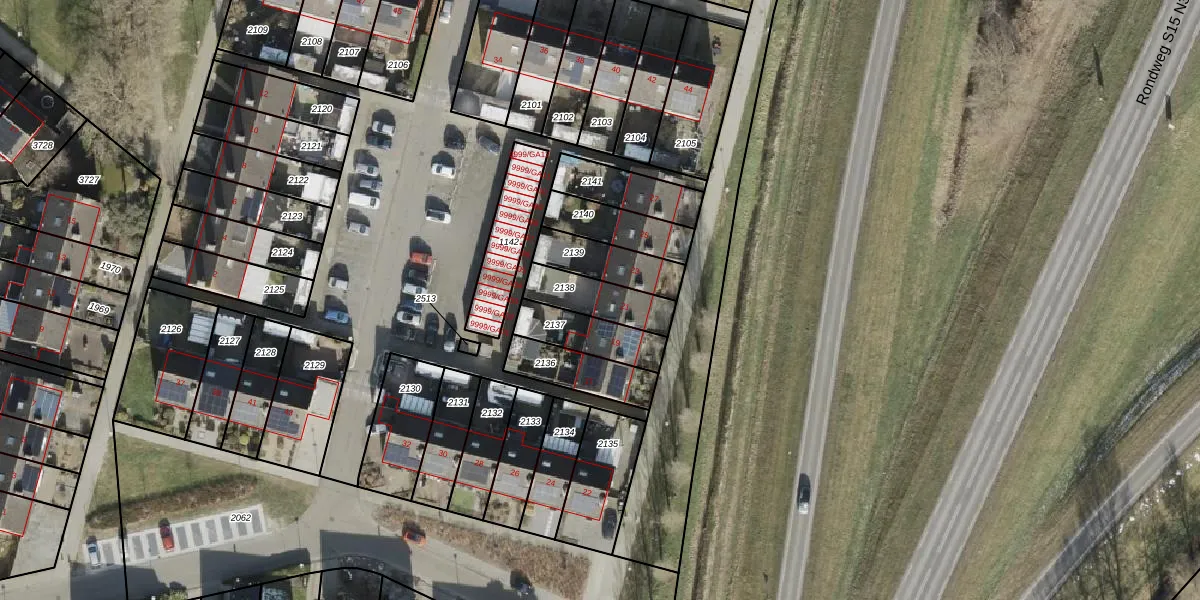 Gebruik de zoekbalk of klik op een perceel voor informatie over de adressen binnen dit perceel.