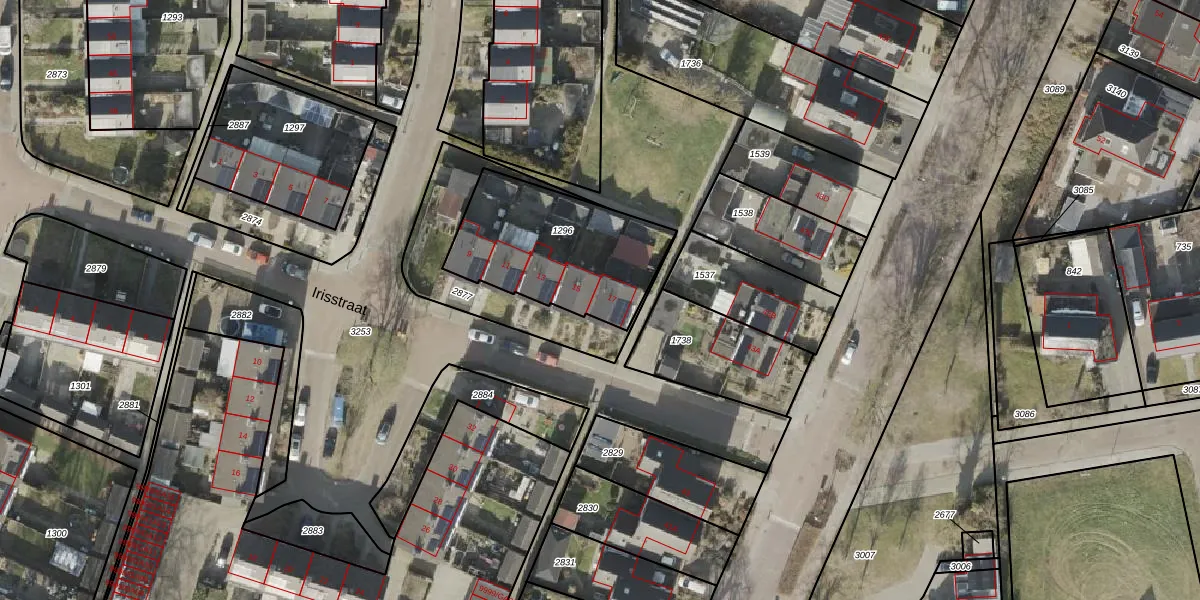 Het perceel waarop Irisstraat 17 staat heeft een oppervlakte van 598 m². Dit is een groot perceel. De perceeloppervlakte wordt geregistreerd door het Kadaster. Gedetailleerde informatie over de maten van dit perceel kunt u vinden in het rapport Kadastrale kaart met maatvoering van Irisstraat 17.