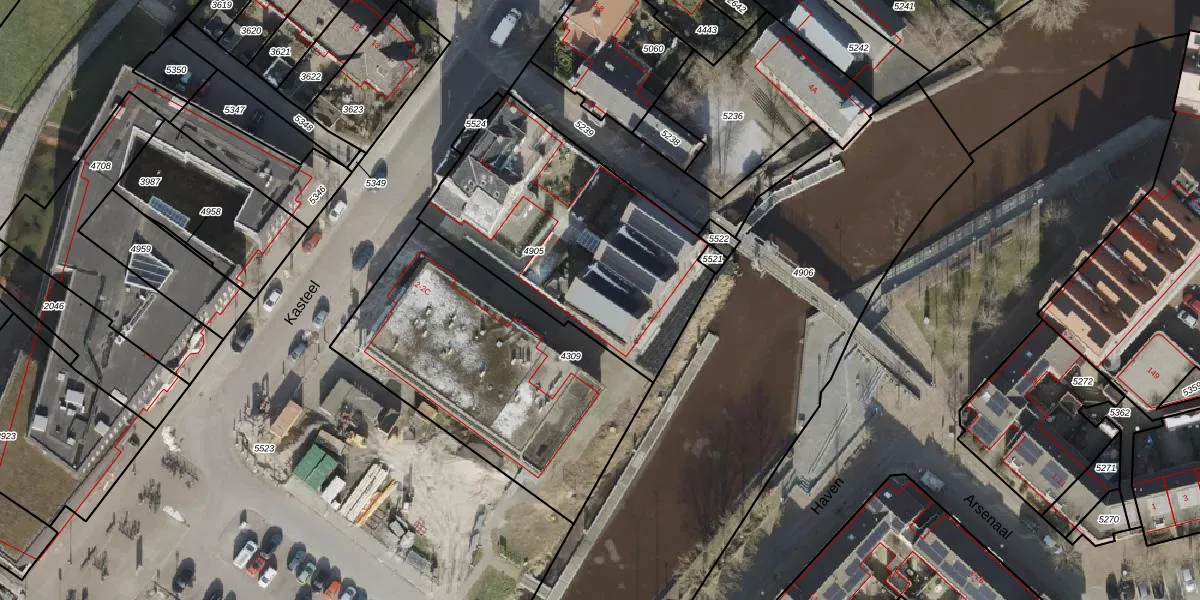 Het perceel waarop Kasteel 4-G staat heeft een oppervlakte van 1170 m². Dit is een zeer groot perceel. De perceeloppervlakte wordt geregistreerd door het Kadaster. Gedetailleerde informatie over de maten van dit perceel kunt u vinden in het rapport Kadastrale kaart met maatvoering van Kasteel 4-G.