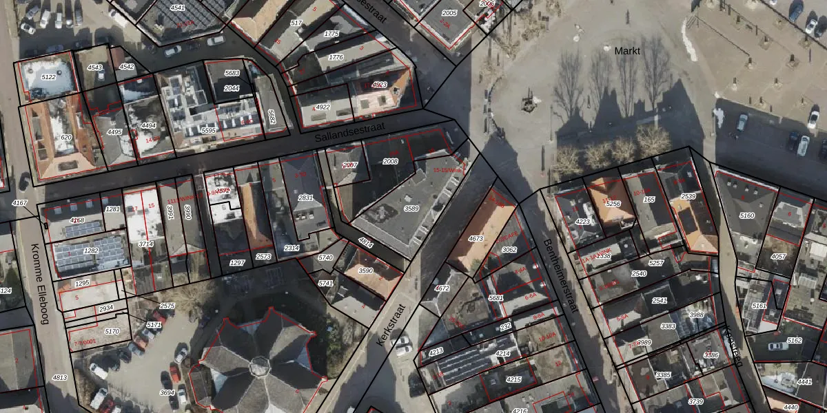 Het perceel waarop Markt 15-Wink staat heeft een oppervlakte van 410 m². Dit is een groot perceel. De perceeloppervlakte wordt geregistreerd door het Kadaster. Gedetailleerde informatie over de maten van dit perceel kunt u vinden in het rapport Kadastrale kaart met maatvoering van Markt 15-Wink.