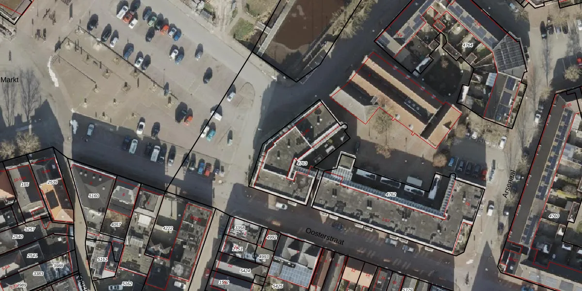 Het perceel waarop Markt 28 staat heeft een oppervlakte van 651 m². Dit is een groot perceel. De perceeloppervlakte wordt geregistreerd door het Kadaster. Gedetailleerde informatie over de maten van dit perceel kunt u vinden in het rapport Kadastrale kaart met maatvoering van Markt 28.