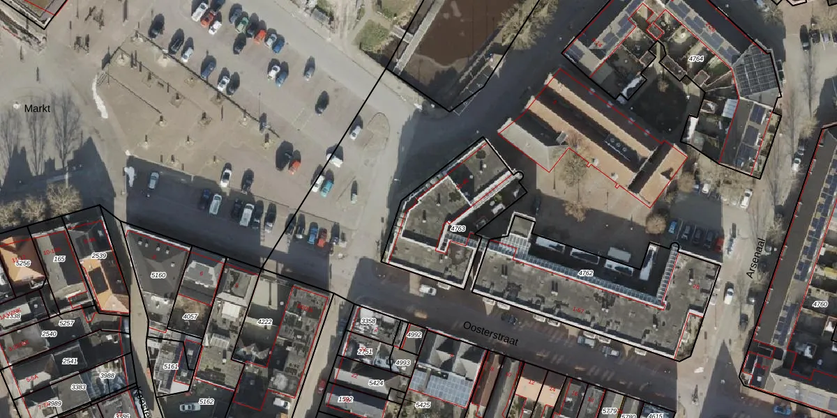 Het perceel waarop Markt 30 staat heeft een oppervlakte van 651 m². Dit is een groot perceel. De perceeloppervlakte wordt geregistreerd door het Kadaster. Gedetailleerde informatie over de maten van dit perceel kunt u vinden in het rapport Kadastrale kaart met maatvoering van Markt 30.