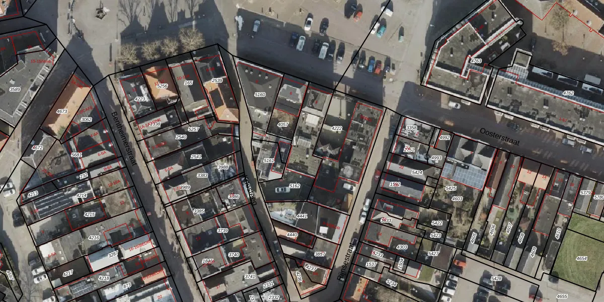 Het perceel waarop Markt 5 staat heeft een oppervlakte van 438 m². Dit is een groot perceel. De perceeloppervlakte wordt geregistreerd door het Kadaster. Gedetailleerde informatie over de maten van dit perceel kunt u vinden in het rapport Kadastrale kaart met maatvoering van Markt 5.