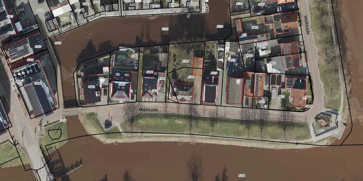 Het perceel waarop Melkkade 2 staat heeft een oppervlakte van 311 m². Dit is een groot perceel. De perceeloppervlakte wordt geregistreerd door het Kadaster. Gedetailleerde informatie over de maten van dit perceel kunt u vinden in het rapport Kadastrale kaart met maatvoering van Melkkade 2.