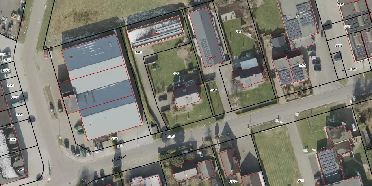 Het perceel waarop Modem 8 staat heeft een oppervlakte van 1119 m². Dit is een zeer groot perceel. De perceeloppervlakte wordt geregistreerd door het Kadaster. Gedetailleerde informatie over de maten van dit perceel kunt u vinden in het rapport Kadastrale kaart met maatvoering van Modem 8.
