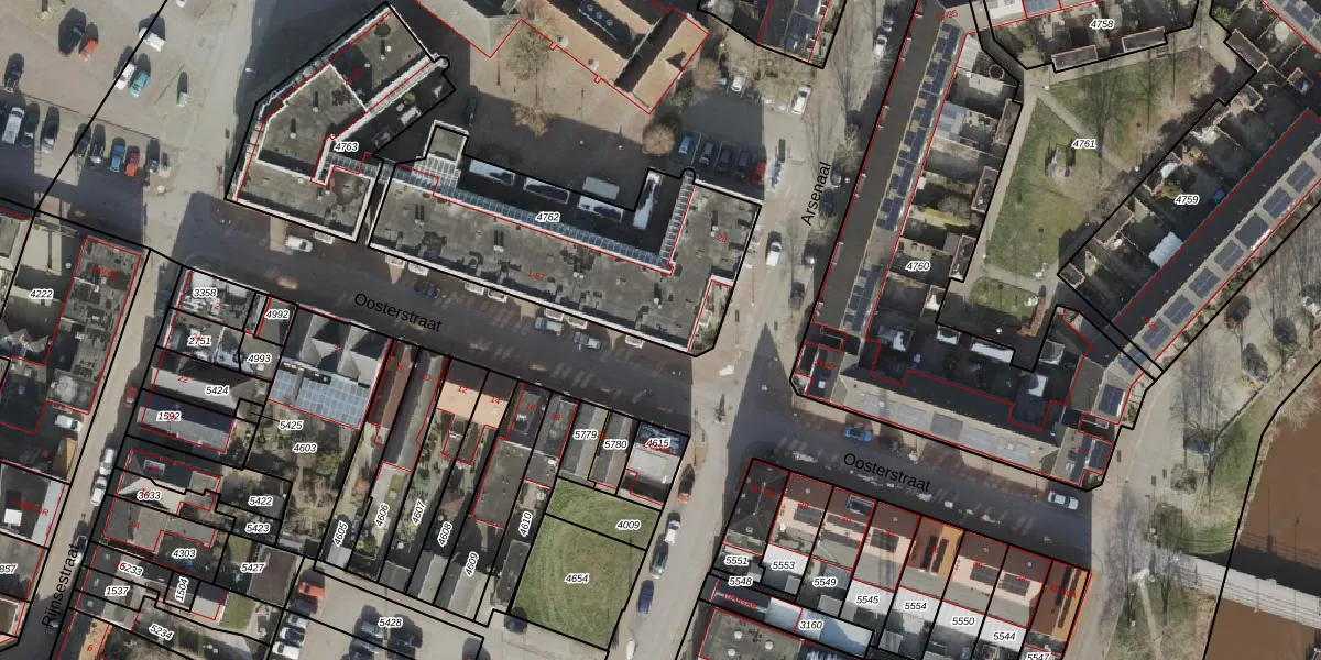 Het perceel waarop Oosterstraat 57 staat heeft een oppervlakte van 1098 m². Dit is een zeer groot perceel. De perceeloppervlakte wordt geregistreerd door het Kadaster. Gedetailleerde informatie over de maten van dit perceel kunt u vinden in het rapport Kadastrale kaart met maatvoering van Oosterstraat 57.