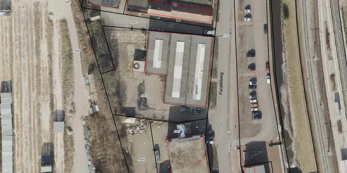 Het perceel waarop Parallelweg 31 staat heeft een oppervlakte van 3036 m². Dit is een zeer groot perceel. De perceeloppervlakte wordt geregistreerd door het Kadaster. Gedetailleerde informatie over de maten van dit perceel kunt u vinden in het rapport Kadastrale kaart met maatvoering van Parallelweg 31.