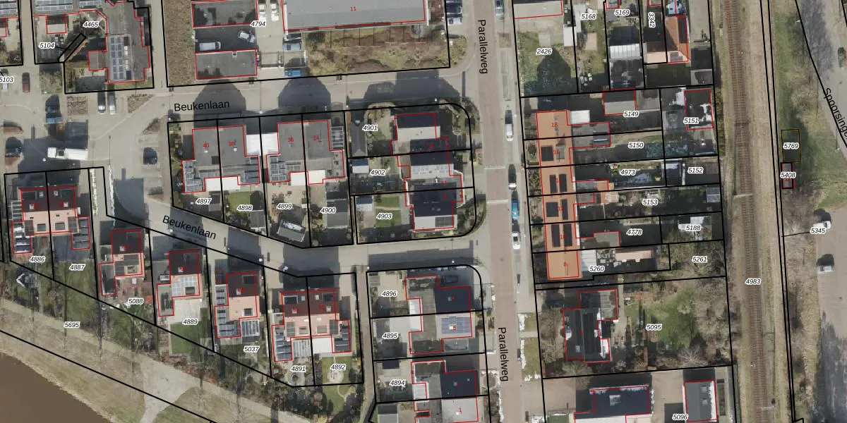 Het perceel waarop Parallelweg 9 staat heeft een oppervlakte van 319 m². Dit is een groot perceel. De perceeloppervlakte wordt geregistreerd door het Kadaster. Gedetailleerde informatie over de maten van dit perceel kunt u vinden in het rapport Kadastrale kaart met maatvoering van Parallelweg 9.