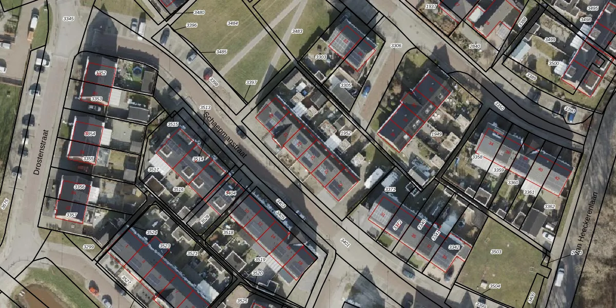 Het perceel waarop Schaepmanstraat 25 staat heeft een oppervlakte van 1156 m². Dit is een zeer groot perceel. De perceeloppervlakte wordt geregistreerd door het Kadaster. Gedetailleerde informatie over de maten van dit perceel kunt u vinden in het rapport Kadastrale kaart met maatvoering van Schaepmanstraat 25.