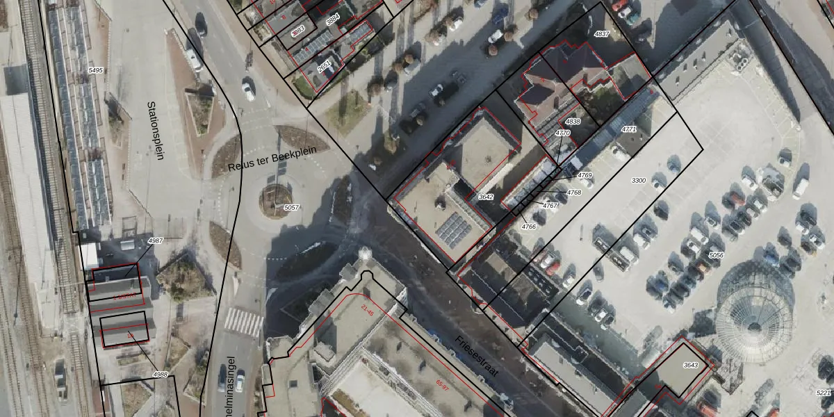 Het perceel waarop Stationsplein 18 staat heeft een oppervlakte van 850 m². Dit is een groot perceel. De perceeloppervlakte wordt geregistreerd door het Kadaster. Gedetailleerde informatie over de maten van dit perceel kunt u vinden in het rapport Kadastrale kaart met maatvoering van Stationsplein 18.