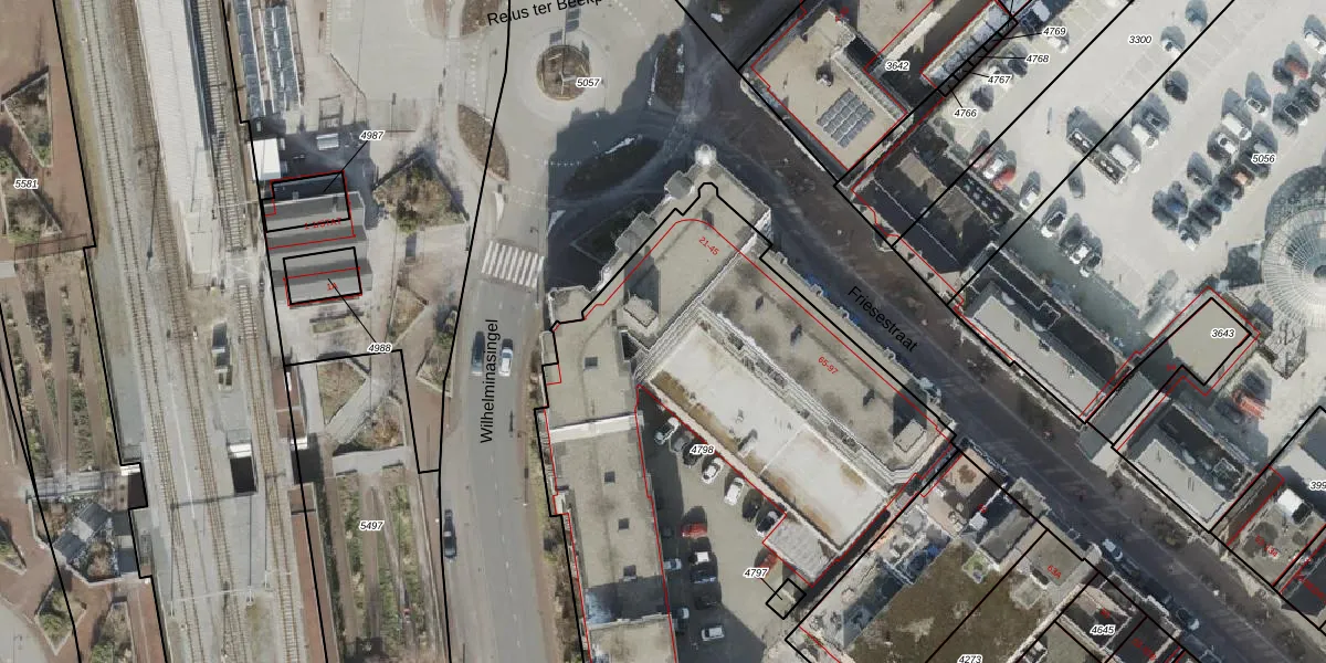 Het perceel waarop Stationsplein 30 staat heeft een oppervlakte van 3579 m². Dit is een zeer groot perceel. De perceeloppervlakte wordt geregistreerd door het Kadaster. Gedetailleerde informatie over de maten van dit perceel kunt u vinden in het rapport Kadastrale kaart met maatvoering van Stationsplein 30.