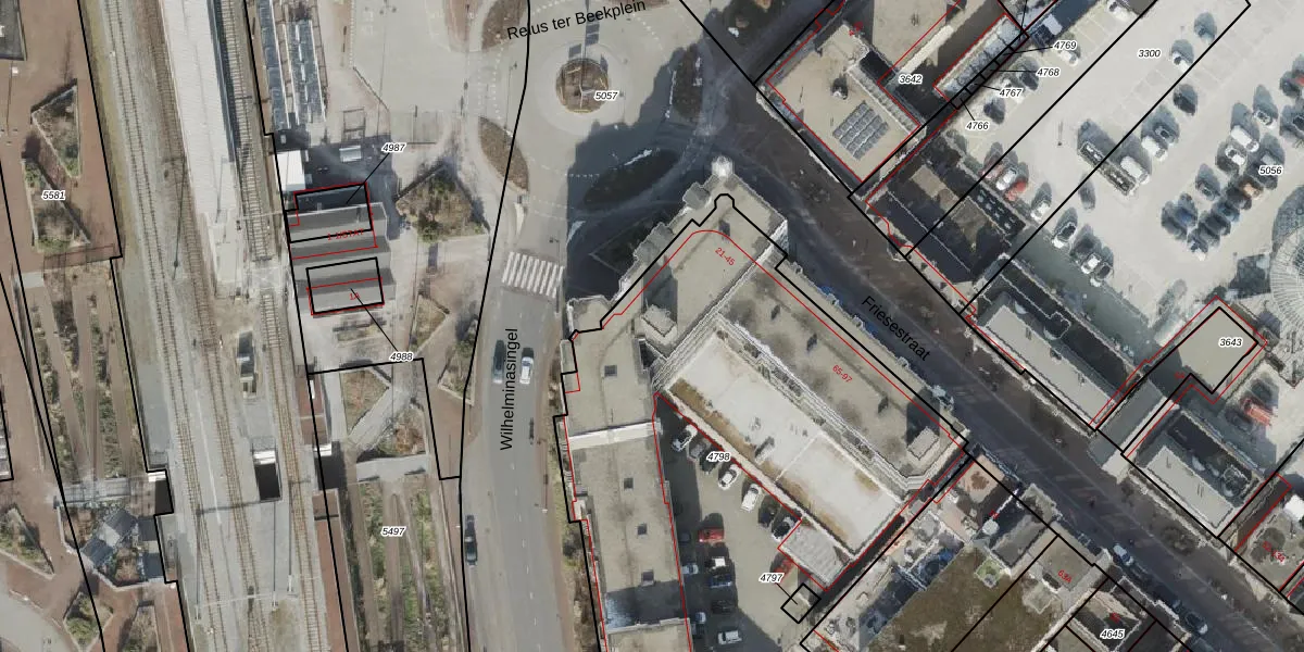 Het perceel waarop Stationsplein 33 staat heeft een oppervlakte van 3579 m². Dit is een zeer groot perceel. De perceeloppervlakte wordt geregistreerd door het Kadaster. Gedetailleerde informatie over de maten van dit perceel kunt u vinden in het rapport Kadastrale kaart met maatvoering van Stationsplein 33.