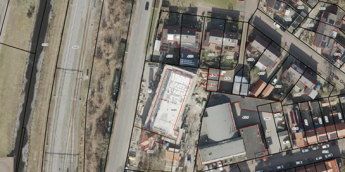 Het perceel waarop Stationsstraat 56 staat heeft een oppervlakte van 1914 m². Dit is een zeer groot perceel. De perceeloppervlakte wordt geregistreerd door het Kadaster. Gedetailleerde informatie over de maten van dit perceel kunt u vinden in het rapport Kadastrale kaart met maatvoering van Stationsstraat 56.