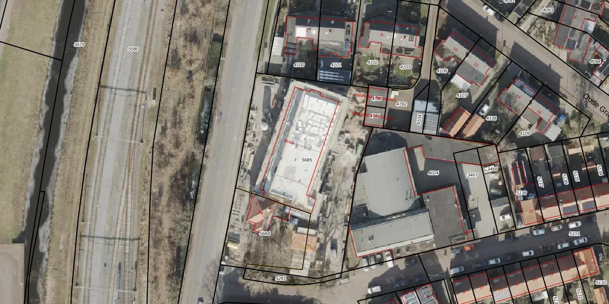 Het perceel waarop Stationsstraat 62 staat heeft een oppervlakte van 1914 m². Dit is een zeer groot perceel. De perceeloppervlakte wordt geregistreerd door het Kadaster. Gedetailleerde informatie over de maten van dit perceel kunt u vinden in het rapport Kadastrale kaart met maatvoering van Stationsstraat 62.