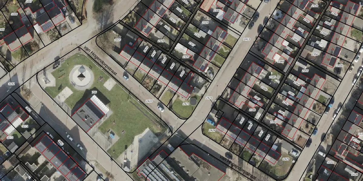 Gebruik de zoekbalk of klik op een perceel voor informatie over de adressen binnen dit perceel.