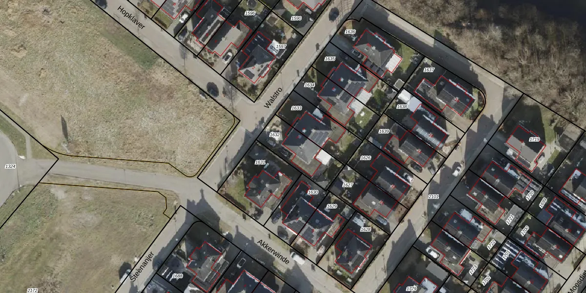 Het perceel waarop Walstro 2 staat heeft een oppervlakte van 321 m². Dit is een groot perceel. De perceeloppervlakte wordt geregistreerd door het Kadaster. Gedetailleerde informatie over de maten van dit perceel kunt u vinden in het rapport Kadastrale kaart met maatvoering van Walstro 2.