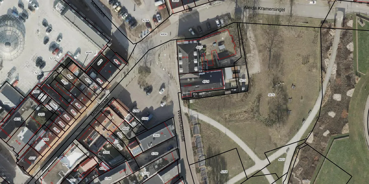 Het perceel waarop Weeshuisstraat 24 staat heeft een oppervlakte van 362 m². Dit is een groot perceel. De perceeloppervlakte wordt geregistreerd door het Kadaster. Gedetailleerde informatie over de maten van dit perceel kunt u vinden in het rapport Kadastrale kaart met maatvoering van Weeshuisstraat 24.