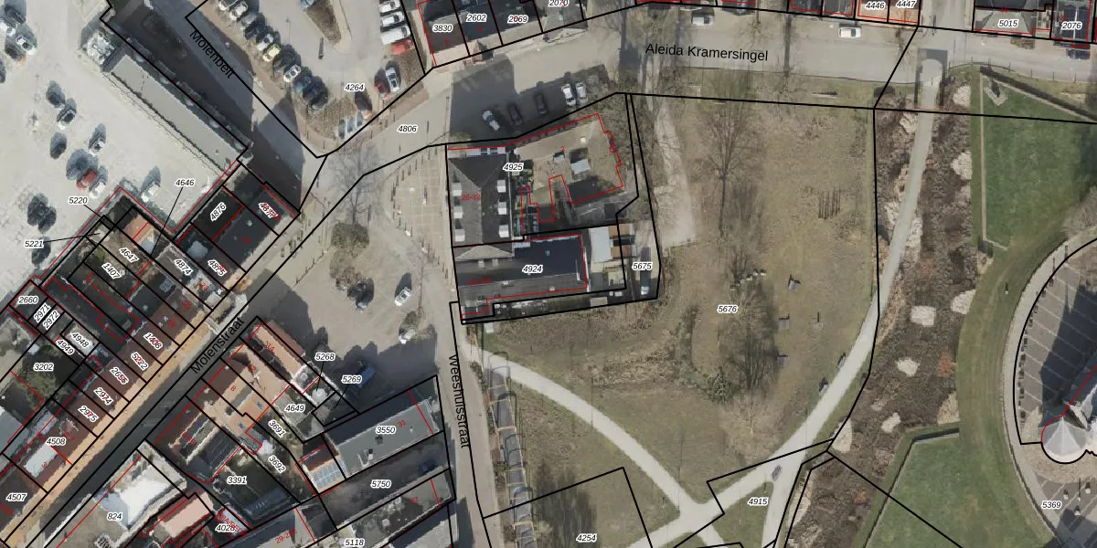 Het perceel waarop Weeshuisstraat 24-A staat heeft een oppervlakte van 362 m². Dit is een groot perceel. De perceeloppervlakte wordt geregistreerd door het Kadaster. Gedetailleerde informatie over de maten van dit perceel kunt u vinden in het rapport Kadastrale kaart met maatvoering van Weeshuisstraat 24-A.