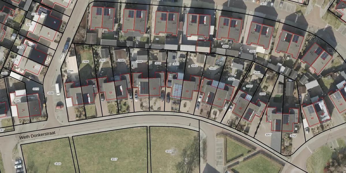 Gebruik de zoekbalk of klik op een perceel voor informatie over de adressen binnen dit perceel.