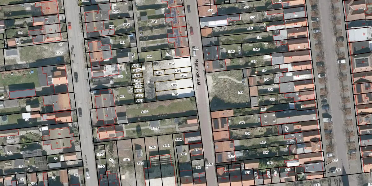 Het perceel waarop Beatrixstraat 1 staat heeft een oppervlakte van 104 m². Dit is een middelgroot perceel. De perceeloppervlakte wordt geregistreerd door het Kadaster. Gedetailleerde informatie over de maten van dit perceel kunt u vinden in het rapport Kadastrale kaart met maatvoering van Beatrixstraat 1.